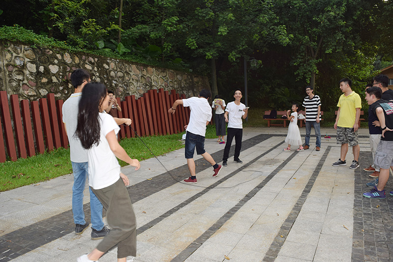跳繩也是這樣的道理,起跳前,我們需要緊繃身體,是自己處于一種緊繃的狀態,以便提高起跳速度。起跳后,在空中的我們則會放松自己,使自己享受這個過程,這樣我們才能跳的更高。這一關比賽的規則是哪一支隊伍在一分鐘內跳繩次數多的隊伍——藍隊獲勝并獲得精美禮品一份。DSC_0087
