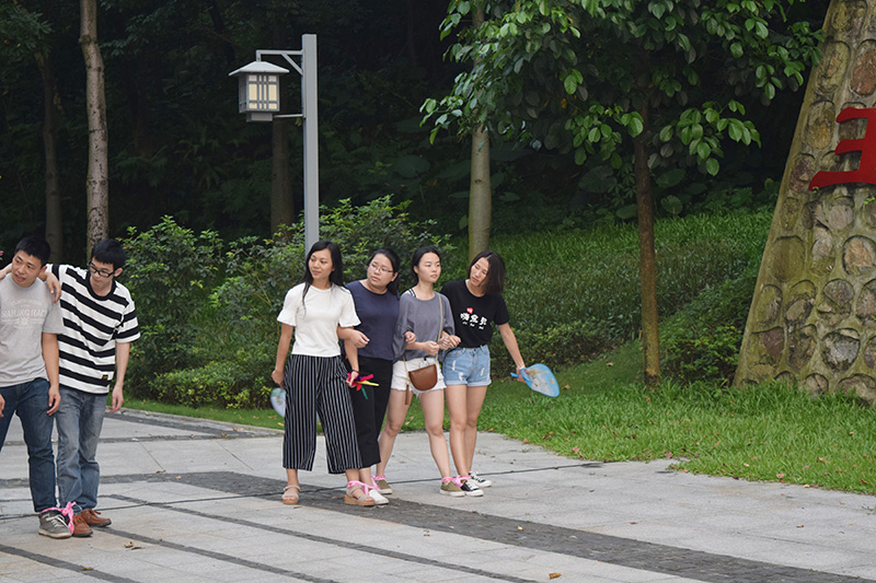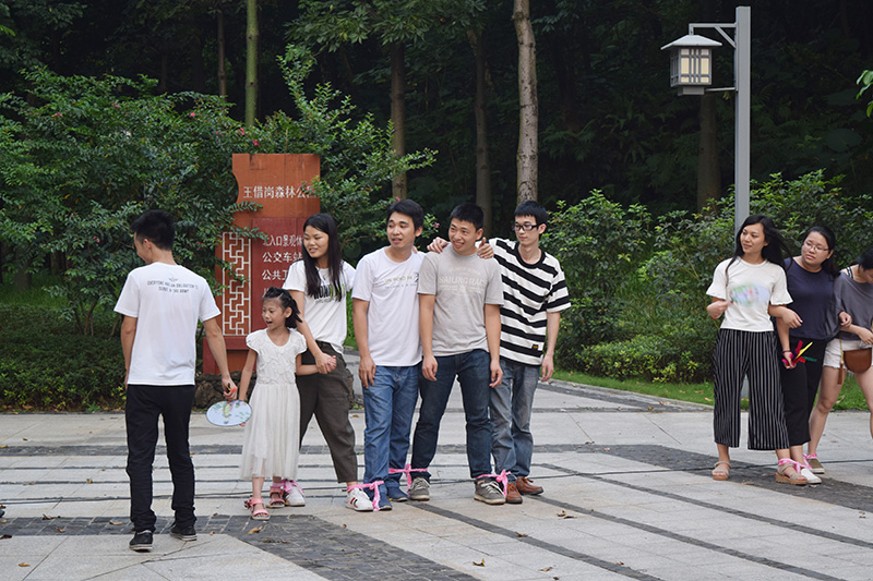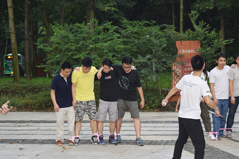 終極環節——齊心協力:每隊的成員站在起跑線上,將相鄰隊員的左右腿綁在一起(綁在踝關節附近),聽到發令后一起跑向終點,先到達終點為勝(勝出一隊可以決定下一個游戲的比賽順序),終環節由紅隊獲勝,獲得大禮品一份。DSC_0108